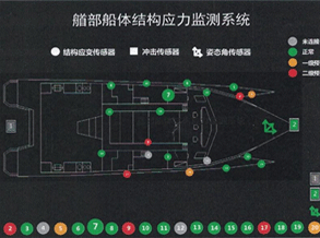 产品概述结构安全与健康监测通过光纤应力传感器和电阻应力传感器监测船体结构变形应力状态变化,通过姿态角传感器监测船体姿态实时变化状态,通过冲击传感器监测船体所受水浪冲击加速度实时变化状态,监测主机实时采集这些状态变化数据加以分析,识别船体结构的受力状况和船体姿态的实时变化状态,为船体结构安全提供辅助监控手段。